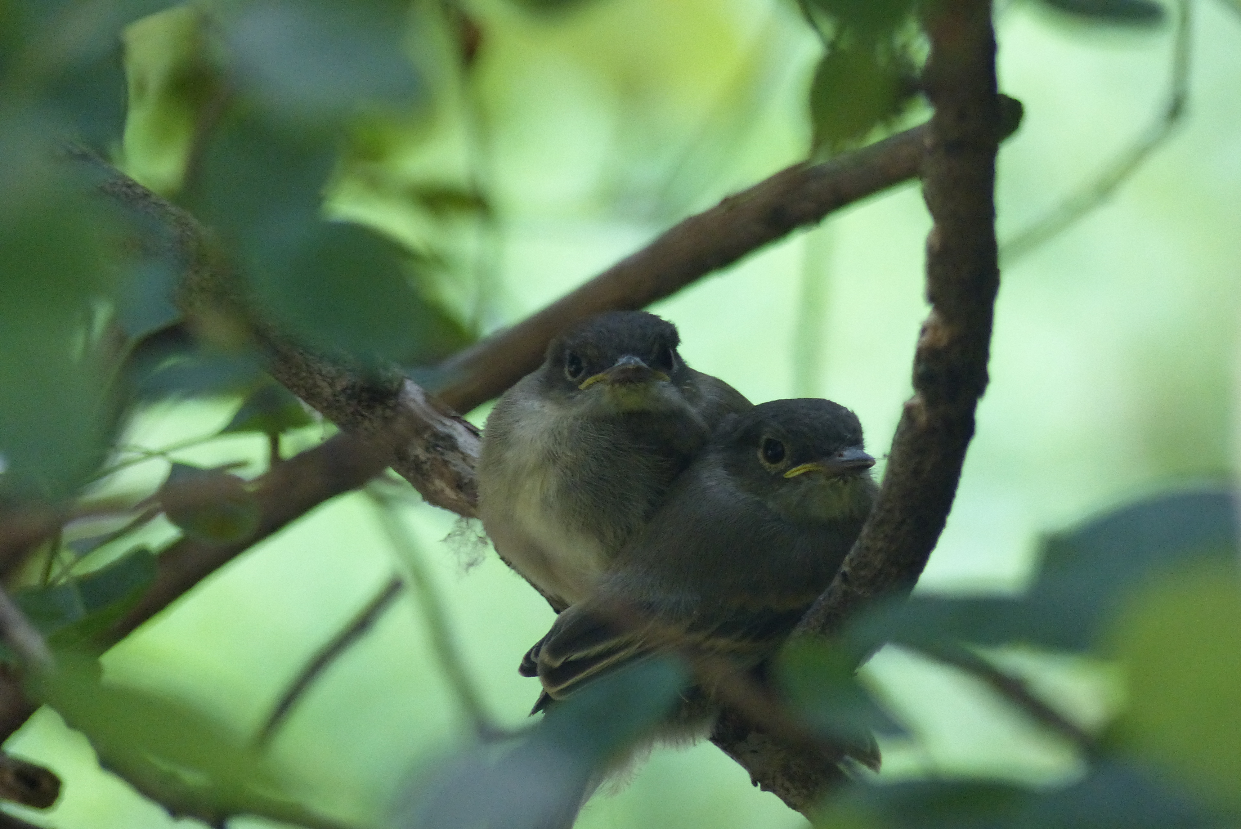 The Phoebe chicks, by the way, fledged on July 10. They were in the nest when I left that morning and gone when I returned in the afternoon. The day before, we managed to snap a few last photos of them in the nest. For days afterward, we saw nothing more than one adult, but my husband has since discovered them in an area of pine trees on the edge of the woods.