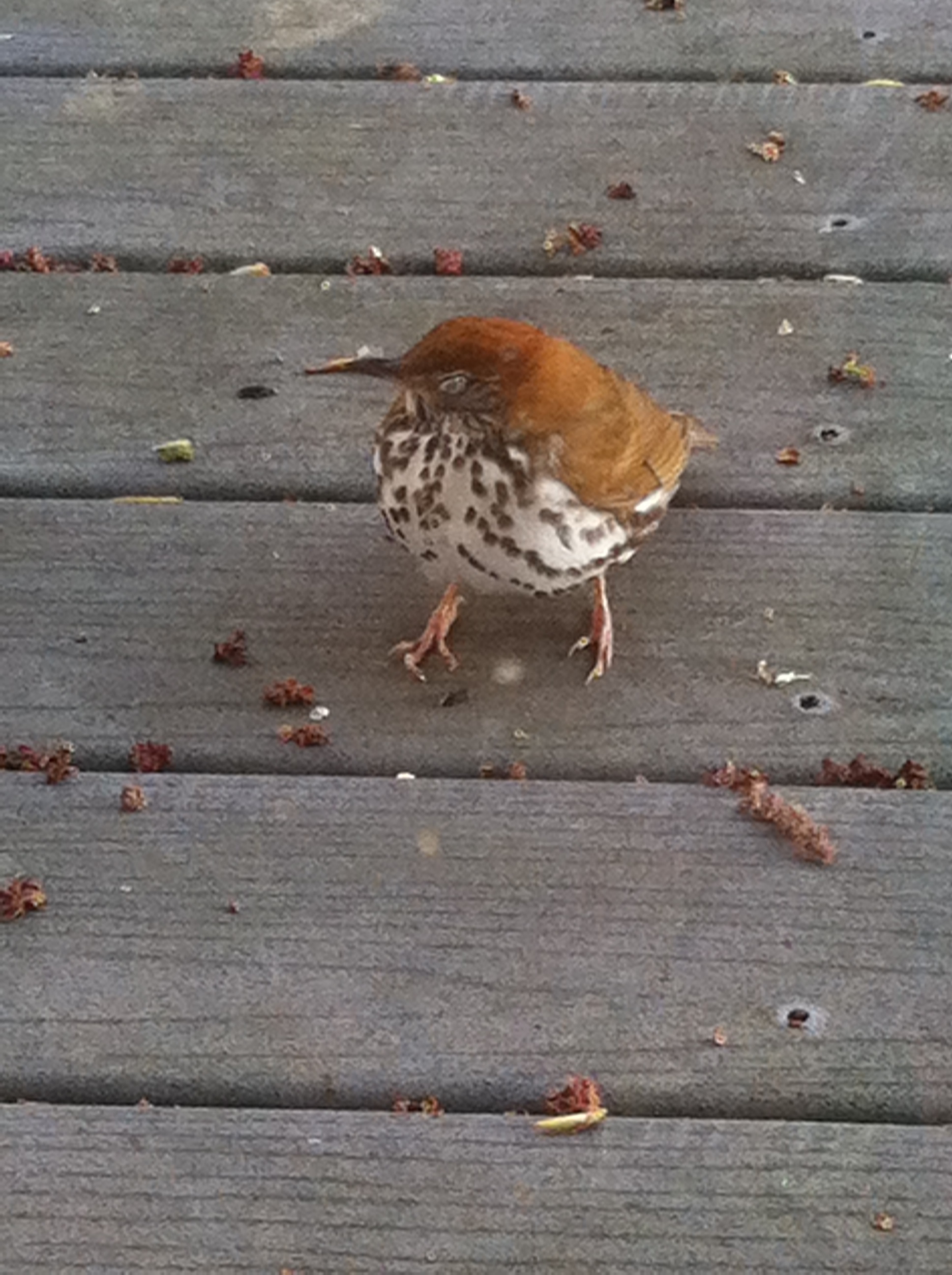 The porch railing post has been a favorite stopping-off point for the adults before they take food to the nest.